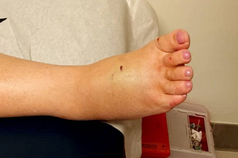 Uma mãe britânica quase perdeu a vida após contrair uma doença fatal após um acidente estranho nas férias, em que uma bancada de granito caiu e esmagou seu pé.