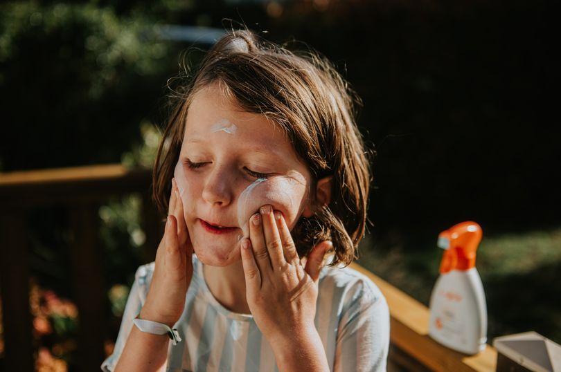 “Aplique protetor solar nas áreas não protegidas pela roupa, como o rosto, orelhas, pés e costas das mãos.” A NHS também aconselha que, se as crianças forem nadar, os pais devem usar protetor solar resistente à água e reaplicá-lo imediatamente após saírem da água, pois nadar pode removê-lo.